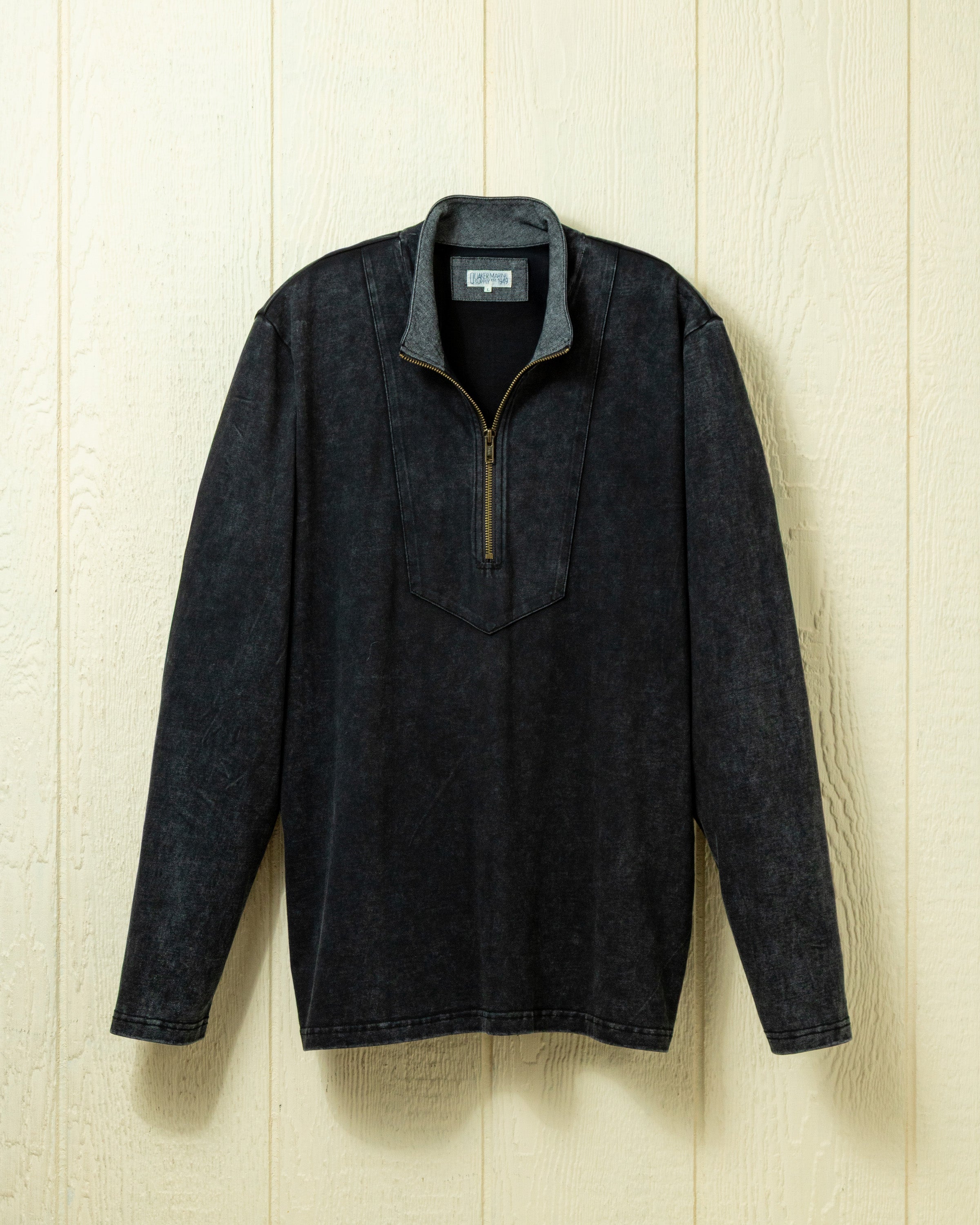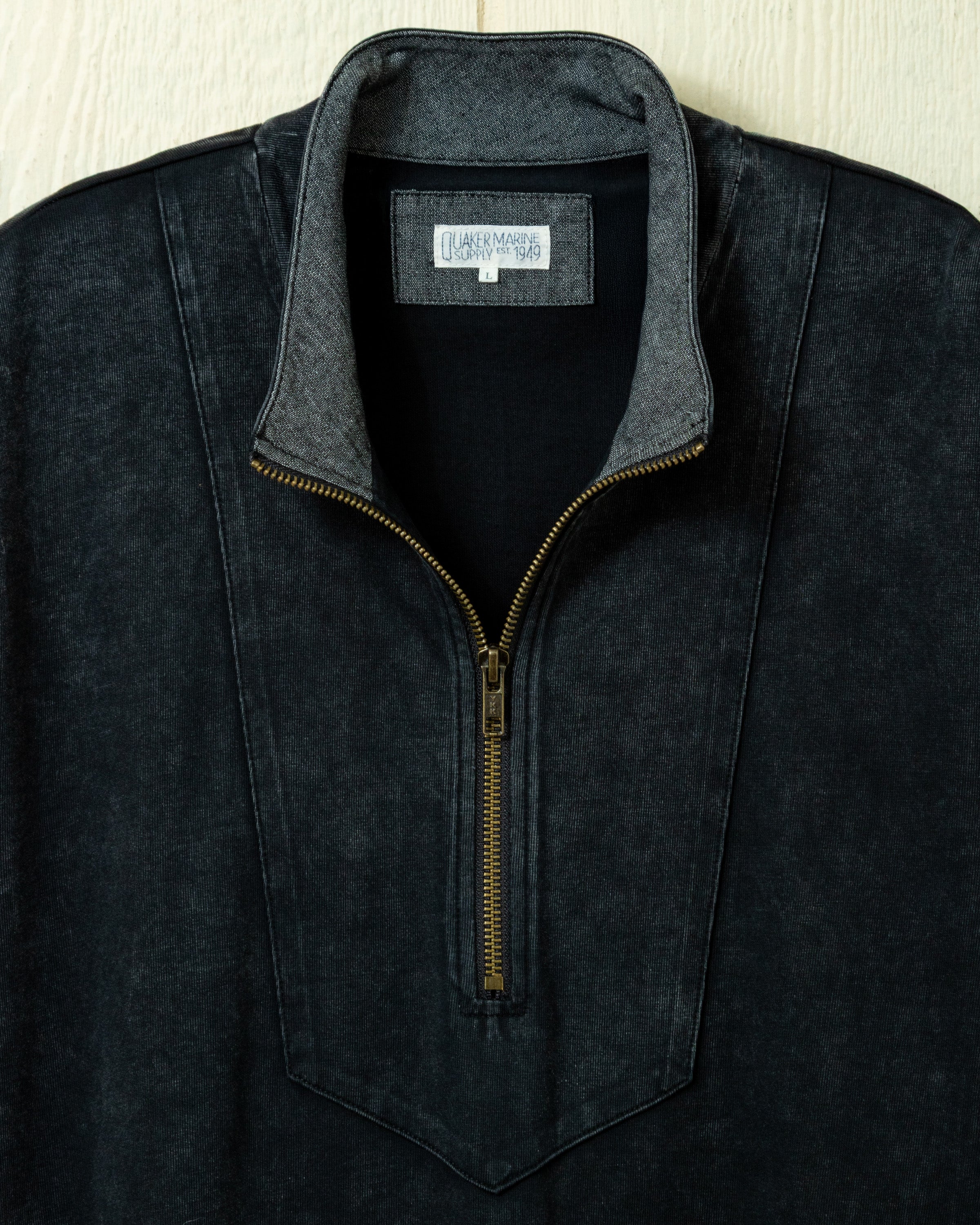 Inspired by the ubiquitous mid-century Breton sailors uniform, our Sconset 1/4 Zip is a familiar silhouette made in our most comfortable Saltwashed knit fabric. Complete with a smock bib motif, chambray collar stand, and an antique YKK zipper.