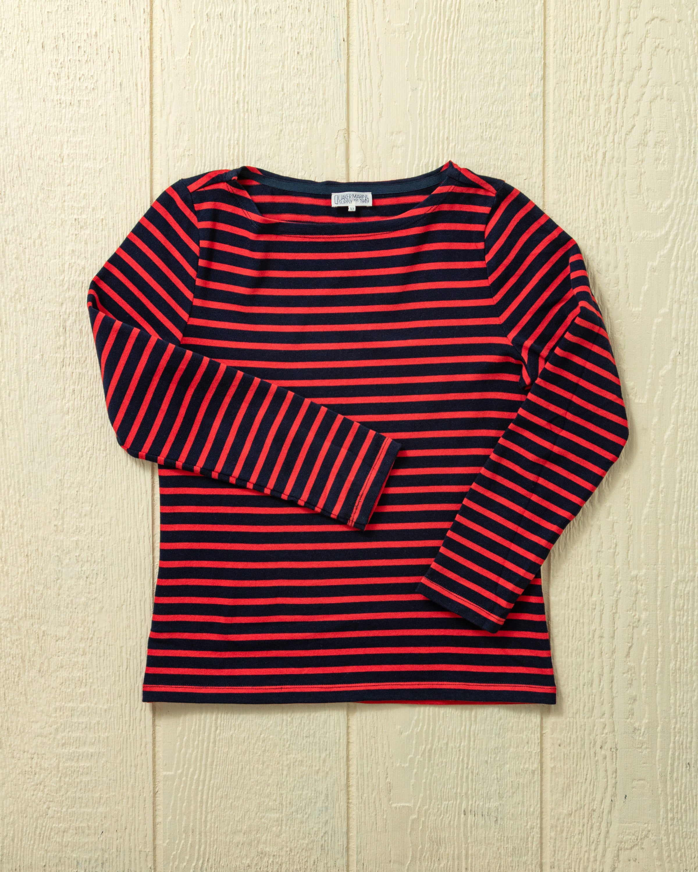 Women’s Breton Stripe Boatneck Tee in Navy/Red