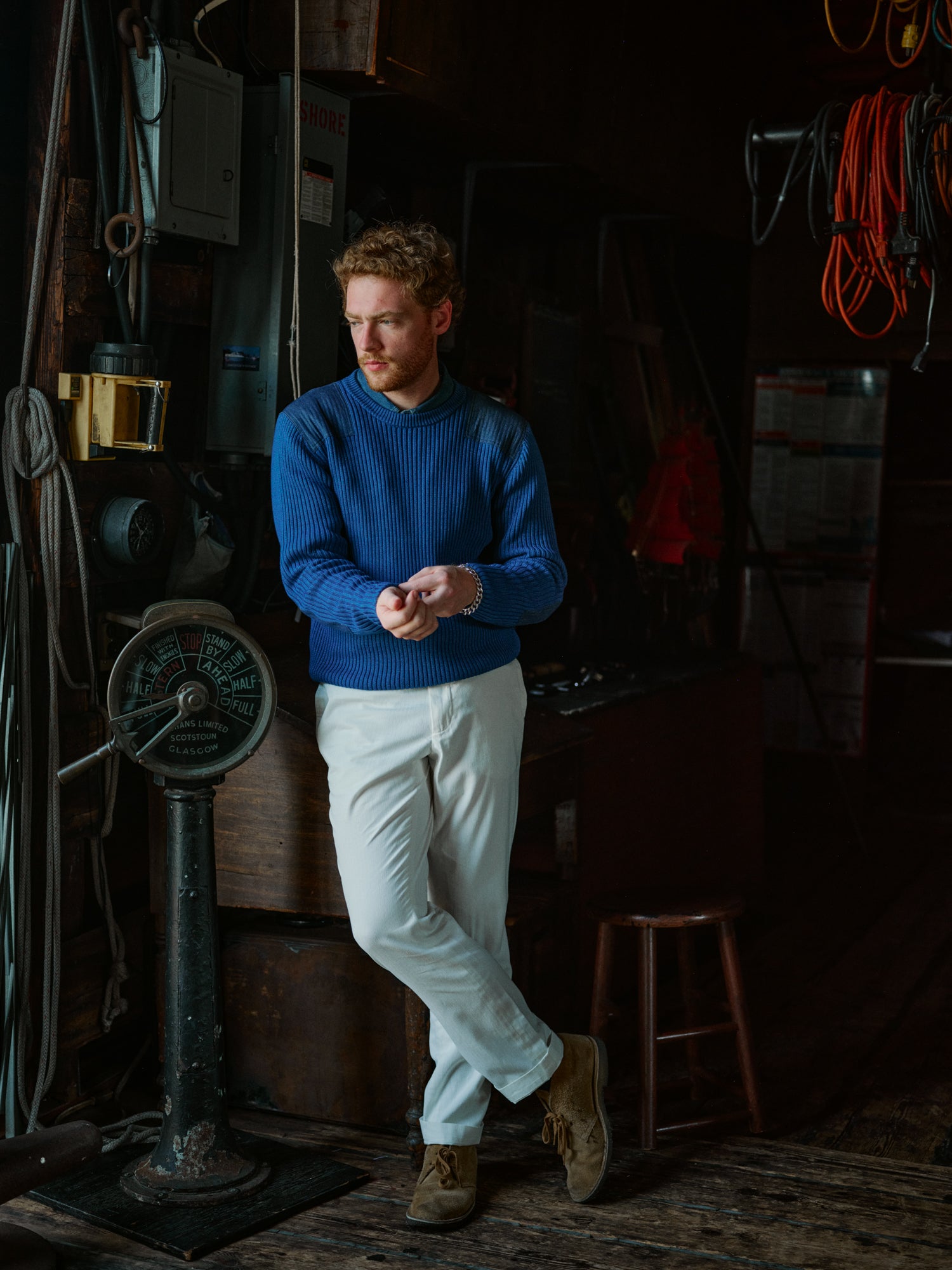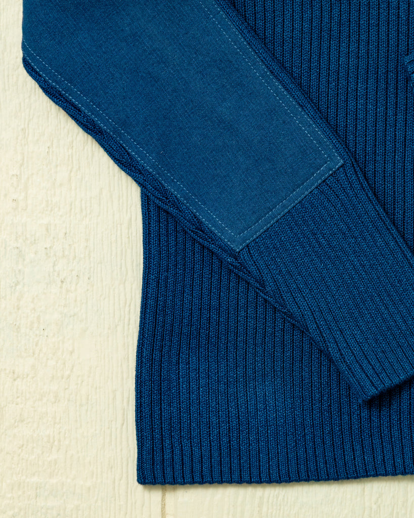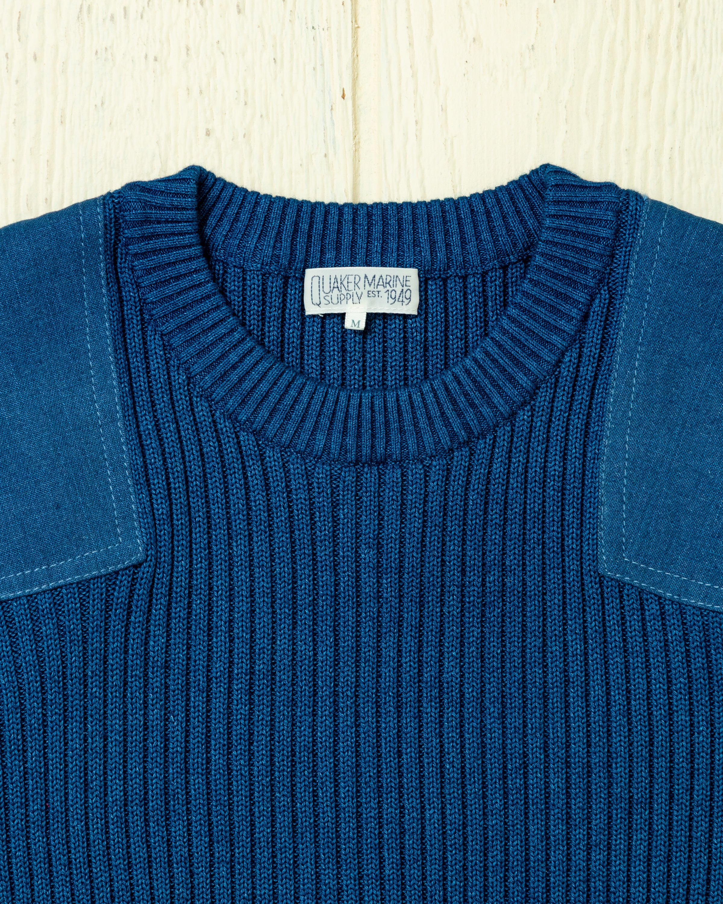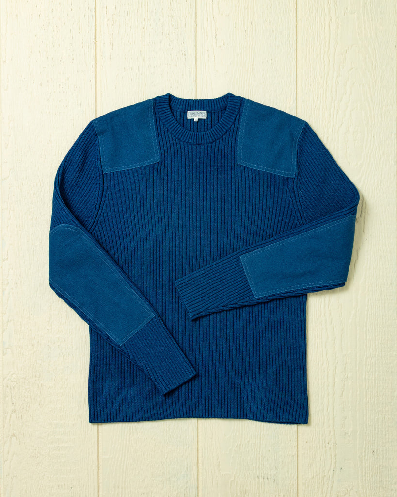 Our take on the perennial classic commando sweater is made in our signature Deep Sea indigo yarn with denim shoulder and elbow patches. A much more wearable alternative to the stiff, woolen original, this sweater will take on even more character with age.