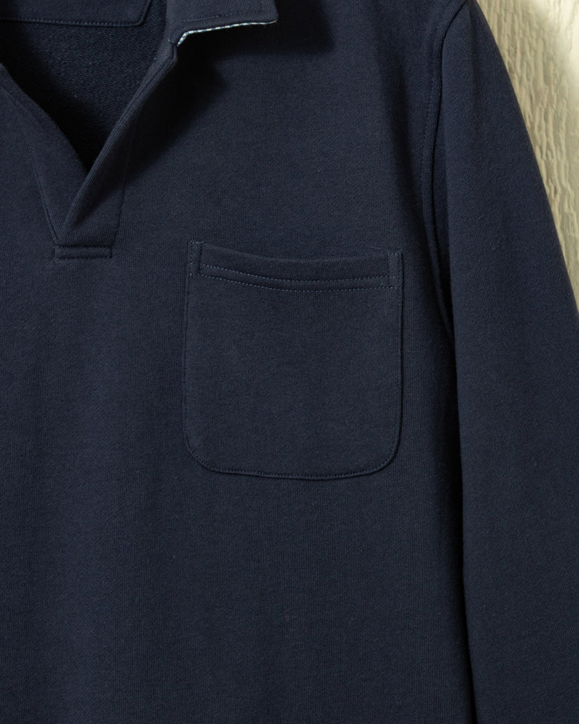 There is no need to compromise on comfort and style here. The Acadia Polo is made from rugby-weight loopback terry that may just put your favorite sweatshirt into early retirement. We added a pop of oxford cloth behind our signature one-button collar to make sure you step out looking sharp.