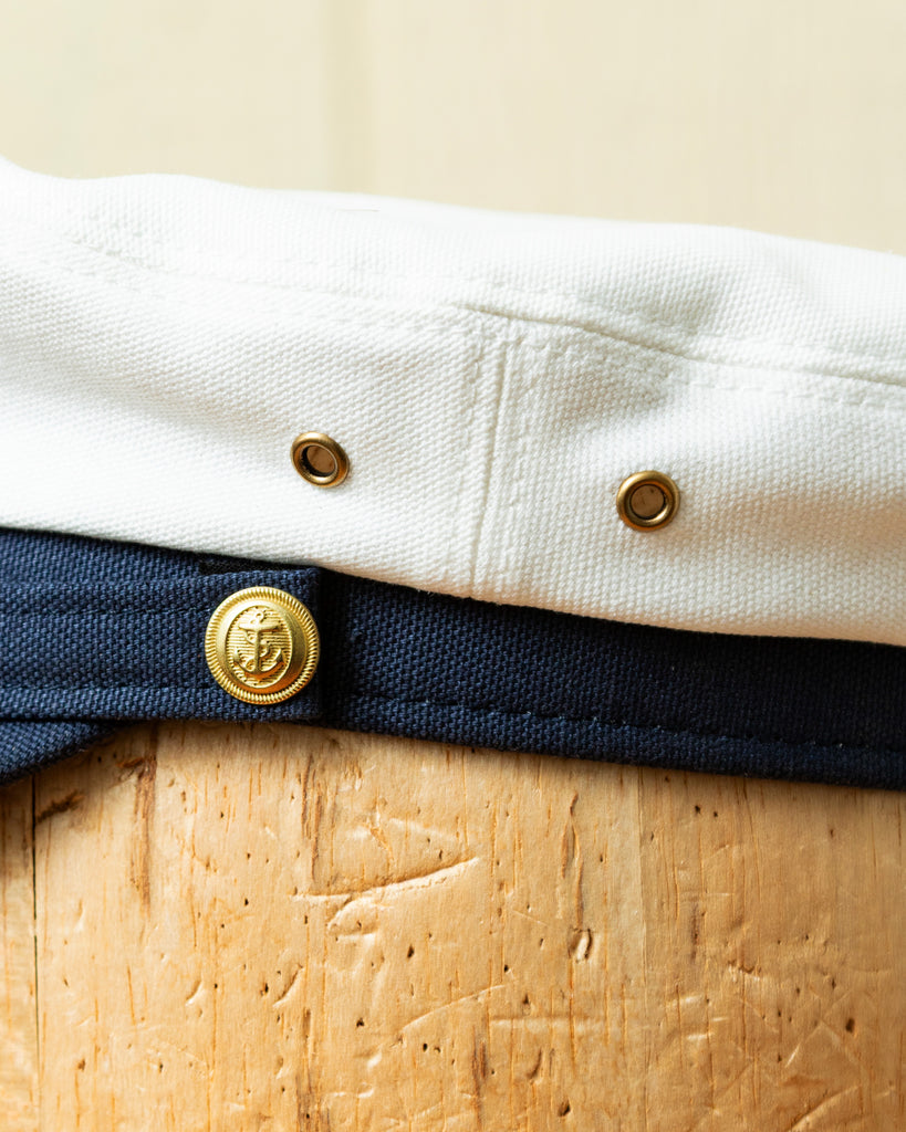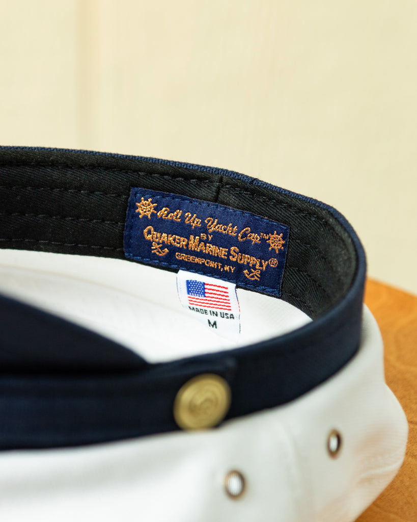 The Roll Up Yacht Cap is a Quaker Marine original, revived from the archives. It has amassed a dedicated following over the years with merchant mariners, commercial fishermen, and sailors. Wear it with confidence, whether at sea or ashore. The Captain's version is adorned with a hand-sewn bullion patch.