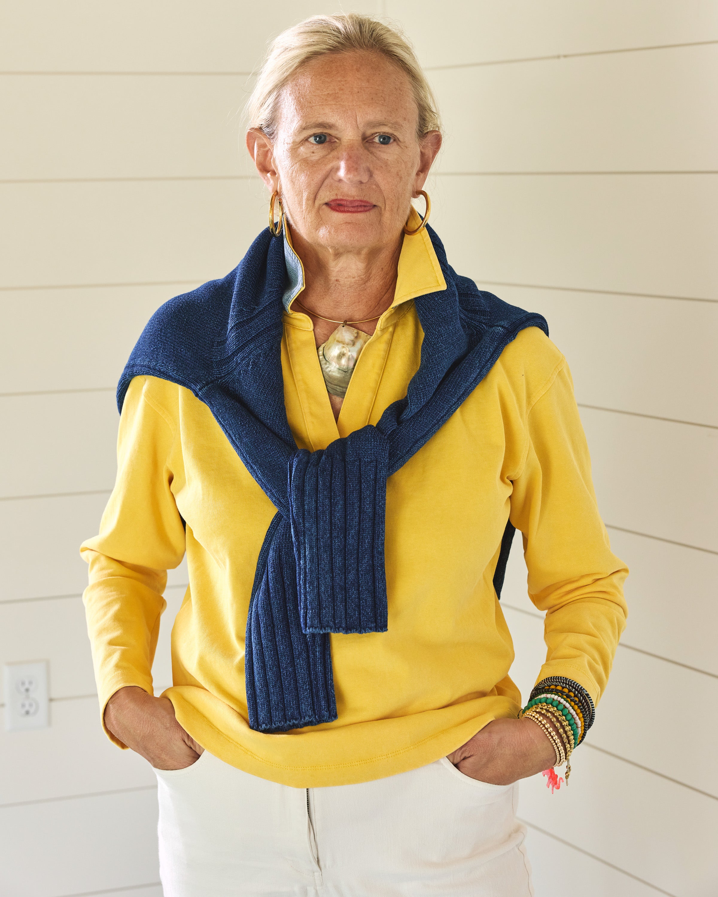 Our Inlet Pullover's collared, v-neck design makes for a relaxed yet elevated look suited for just about any seaside escapade. It is made with rugby-weight cotton fabric, picked for its versatility as a shirt or a light alternative to a sweatshirt. Complete with carefully considered details like a chambray collar-backing.