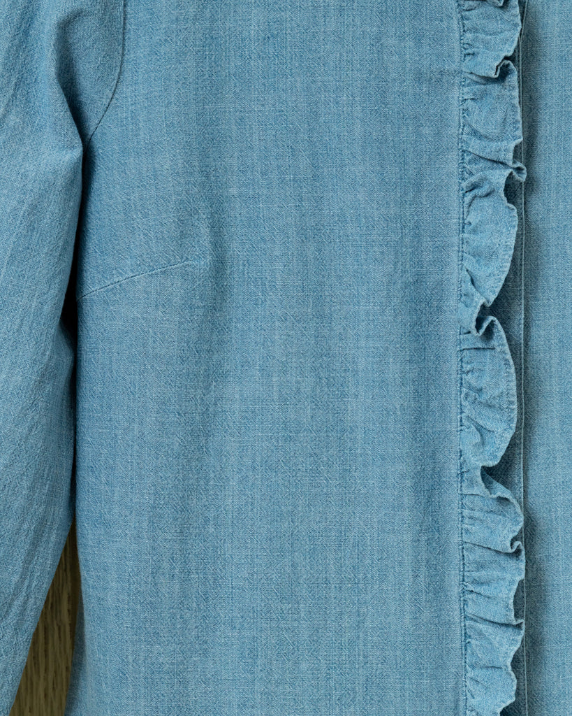 The Ruffle Placket Shirt takes our best-selling Ruffle Shirt to the next level with a fully ruffled placket. We designed the collar to stand up but out of the way, so you can easliy layer a jacket over this statement top.