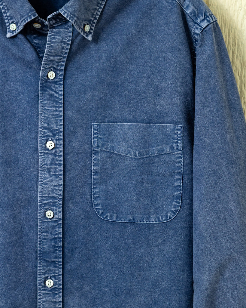 Our garment-dyed oxfords are broken in – not worn out – and have the weathered effect that usually takes years of wear to achieve. Cut from fine cotton oxford cloth with a button down collar.