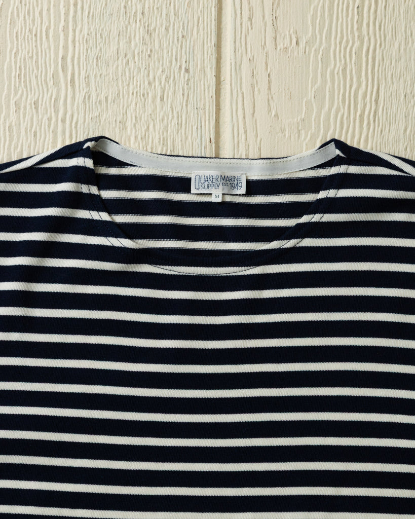 Our newly perfected boatneck tee, cut from mid-weight cotton jersey and inspired by the iconic nautical uniform. Layers well with just about anything, and stands well on its own, making it a year-round seaside staple.