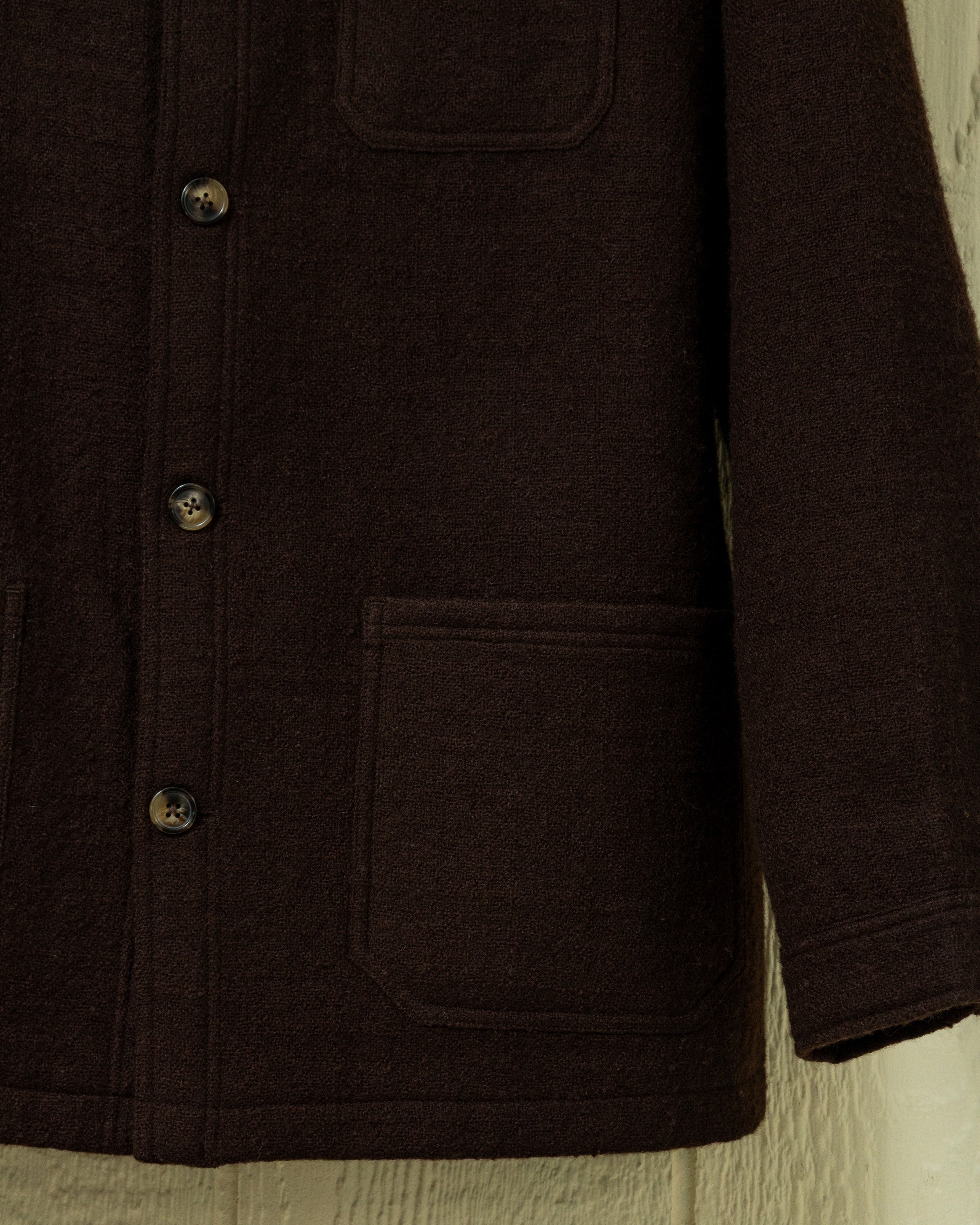 Wool French Workman's Jacket in Mocha Brown Basketweave